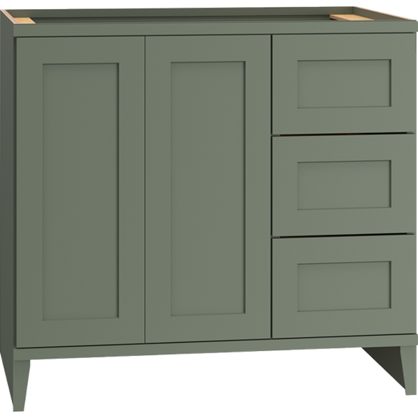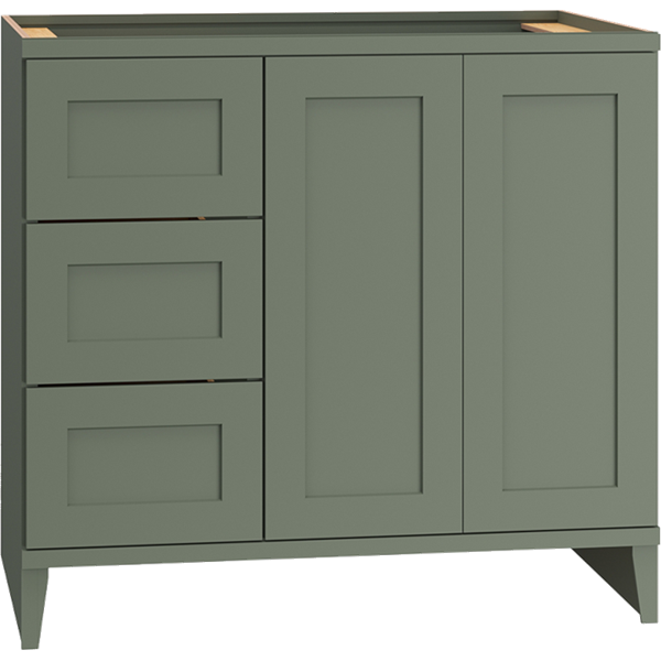 36″ Vanity Sink Base with 3 Drawers (Left or Right) in Omni Rosemary
