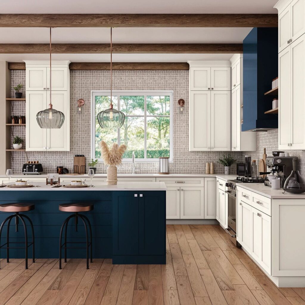 - Shown in Omni cabinet door style with Snow finish