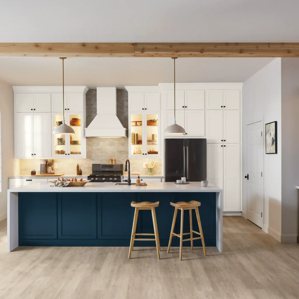 - Cabinet hinged on the right; may be flipped for left hinge application